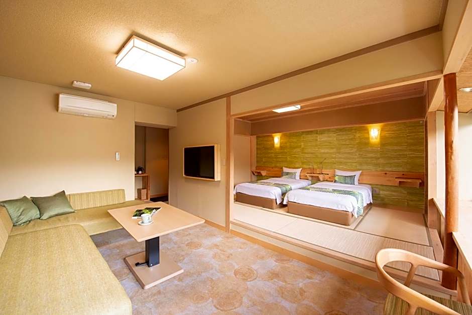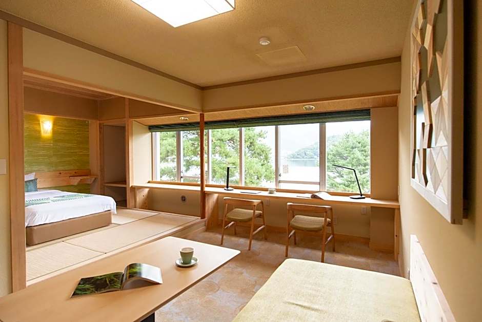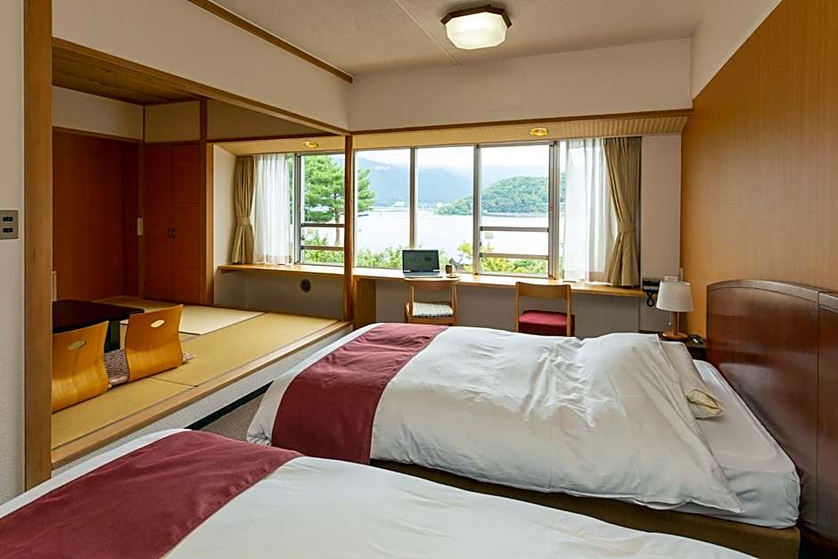 Features lake views, a private open-air bath, Western-style beds and a tatami (woven-straw) seating area. This air-conditioned room comes with a flat-screen TV, a fridge and an electric kettle. Japanese Yukata robes are provided for all guests and the private bathroom comes with a hairdryer.